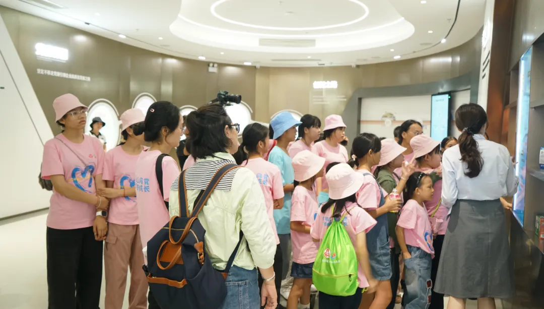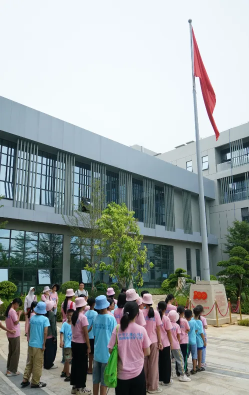 紧接着,孩子们来到了建党百年庆典红旗——070号红旗前。讲解员讲述了六合联盟药业集团与庆典红旗的深厚渊源。孩子们听得津津有味,眼中闪烁着对党和国家的热爱与敬仰。